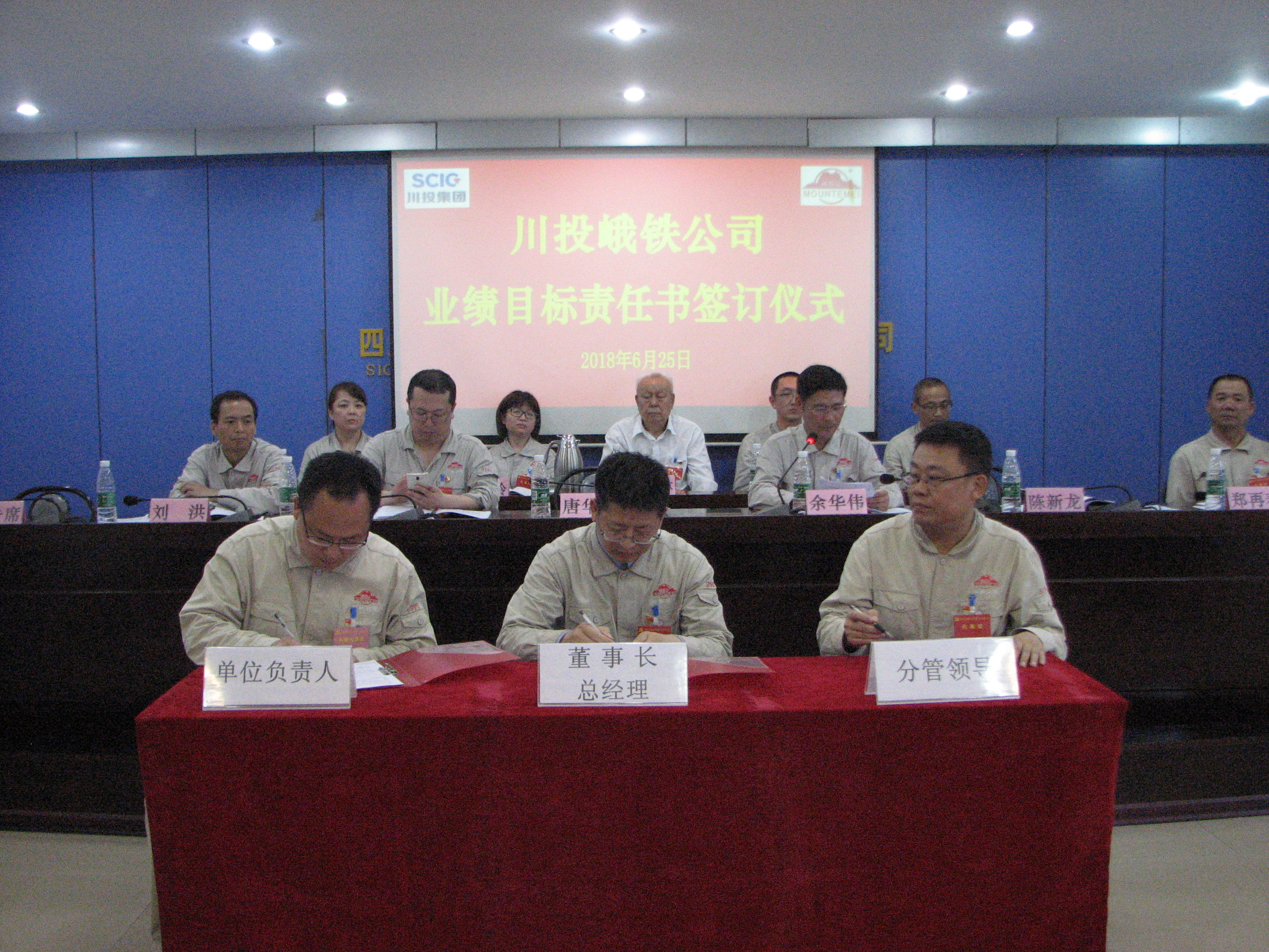 會上,川投峨鐵公司黨委書記、總經(jīng)理唐華應(yīng)同志作了題為《踐行新時(shí)代新思想,增強(qiáng)使命感責(zé)任感,扎實(shí)推動(dòng)峨鐵轉(zhuǎn)型升級和創(chuàng)新發(fā)展》黨委工作報(bào)告,公司黨委副書記、紀(jì)委書記余華偉同志作了題為《用新思想指導(dǎo)新實(shí)踐提升新作為,奮力譜寫新時(shí)代全面從嚴(yán)治黨峨鐵篇章》紀(jì)委工作報(bào)告,全體正式黨員審議并通過了《黨委工作報(bào)告》和《紀(jì)委工作報(bào)告》。公司黨委書記唐華應(yīng)代表公司黨委,分別與節(jié)能一廠黨支部、供銷系統(tǒng)黨支部和儲運(yùn)公司黨支部負(fù)責(zé)人、分管領(lǐng)導(dǎo)、黨員組織關(guān)系在支部的公司領(lǐng)導(dǎo)簽訂了《黨建工作目標(biāo)責(zé)任書》和《黨風(fēng)廉潔建設(shè)黨支部目標(biāo)責(zé)任書》;會上,公司總經(jīng)理與供銷公司、進(jìn)出口公司、永郎矽石礦等單位行政負(fù)責(zé)人、子公司清算組組長分別簽訂了《經(jīng)營業(yè)績目標(biāo)責(zé)任書》和《專項(xiàng)業(yè)績目標(biāo)責(zé)任書》;公司常務(wù)副總經(jīng)理李宏同志宣讀了《關(guān)于表彰2017年度黨建工作先進(jìn)集體和先進(jìn)個(gè)人的決定》和《關(guān)于表彰2017年度優(yōu)秀示范集體(黨支部、班組)、示范崗黨員和命名2018年示范黨支部、示范班組和黨員示范崗的決定》,公司副總經(jīng)理陳新龍同志宣讀了《關(guān)于表彰獎(jiǎng)勵(lì)2018年“慶五·一迎七·一勞動(dòng)技能比賽優(yōu)秀個(gè)人的決定》。隨后,會議對獲獎(jiǎng)的單位和個(gè)人進(jìn)行了頒獎(jiǎng)。優(yōu)秀共產(chǎn)黨員代表、節(jié)能一廠天車工方剛同志宣讀了《倡議書》,號召全體黨員堅(jiān)定信念、敢于擔(dān)當(dāng)、凝心聚力,合力推進(jìn)公司轉(zhuǎn)型升級和創(chuàng)新發(fā)展。