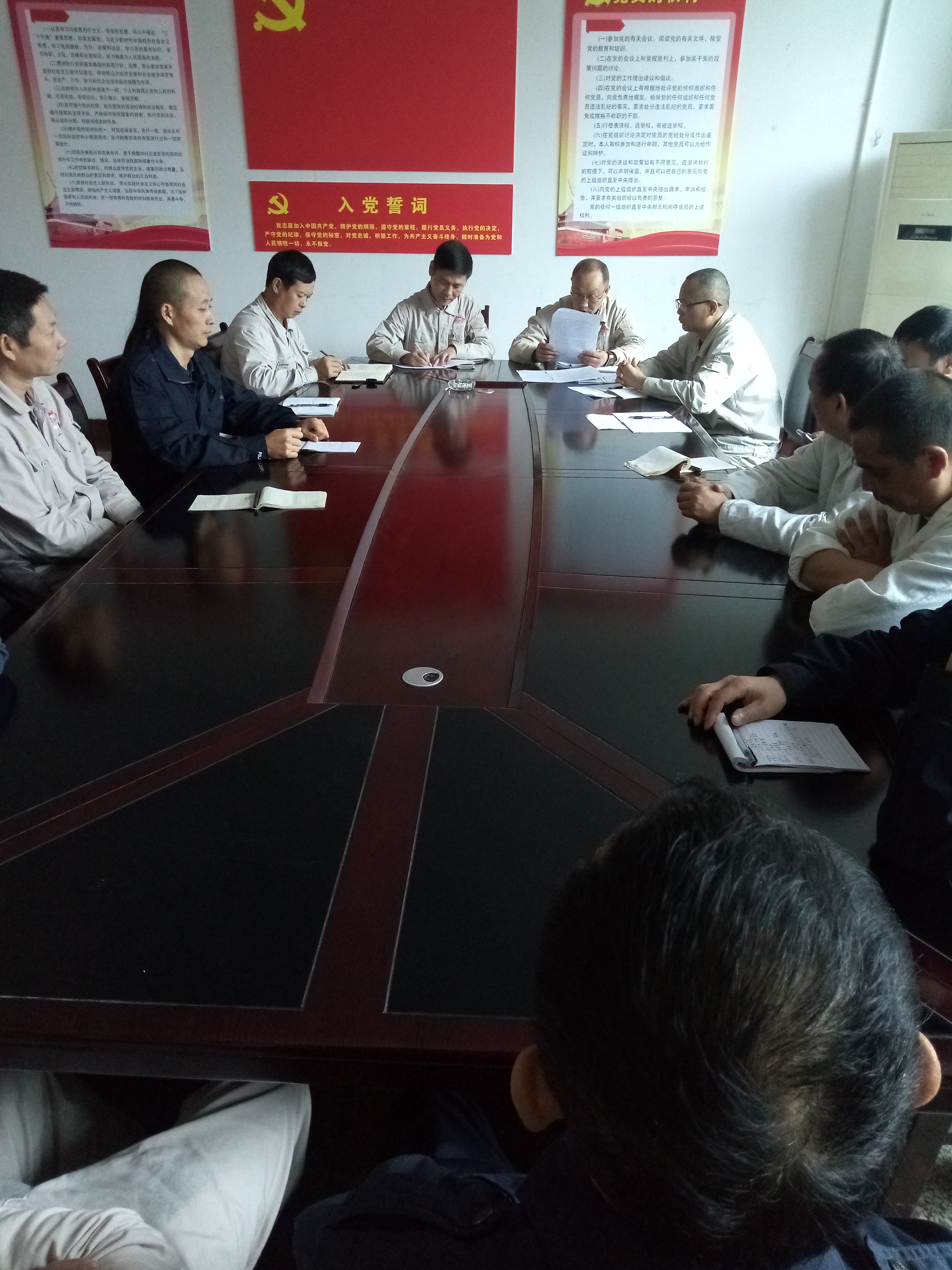 按照川投峨鐵公司黨委統(tǒng)一安排部署,公司各黨支部均召開支部黨員大會,組織在崗黨員重點(diǎn)傳達(dá)、學(xué)習(xí)了新修訂的《中國共產(chǎn)黨紀(jì)律處分條例》和樂山市委七屆五次全會精神、市紀(jì)委機(jī)關(guān)、市委組織部《關(guān)于轉(zhuǎn)發(fā)〈關(guān)于提高民主生活會質(zhì)量的有關(guān)規(guī)定〉的通知》、市委組織部《關(guān)于貫徹落實(shí)〈關(guān)于黨的基層組織任期的意見〉規(guī)范基層黨組織換屆工作的通知》、市委組織部《關(guān)于印發(fā)〈關(guān)于開展巡視發(fā)現(xiàn)“黨建工作中弄虛作假現(xiàn)象”專項整治工作方案〉的通知》以及《中共四川省委關(guān)于追授王濤、廖弦、張貴平同志“四川省優(yōu)秀共產(chǎn)黨員”的決定》。參會的黨員、干部紛紛表示,要以黨章黨規(guī)黨紀(jì)為準(zhǔn)繩,堅守底線、不碰紅線,以先進(jìn)為榜樣,努力做好本職工作,全力打好年度目標(biāo)任務(wù)攻堅戰(zhàn)。同時,各黨支部堅持學(xué)做結(jié)合抓落實(shí),完成了“黨員代表”的換屆選舉工作;組織黨員、干部和職工開展了“2018年扶貧日募捐活動”,11個黨支部共捐款29247元。服務(wù)加工黨支部、儲運(yùn)公司黨支部、矽石礦黨支部、機(jī)關(guān)黨支部等立足工作需要,分別開展了“產(chǎn)品人力加工突擊”“原料堆放場地歸整”“15線鐵路軌道沿線清理”“矽石礦電門溝渠搶險工作”以及廠區(qū)花園、綠化帶等除雜草等服務(wù)生產(chǎn)經(jīng)營、美化環(huán)境等志愿者活動與黨員“政治生日”活動。
