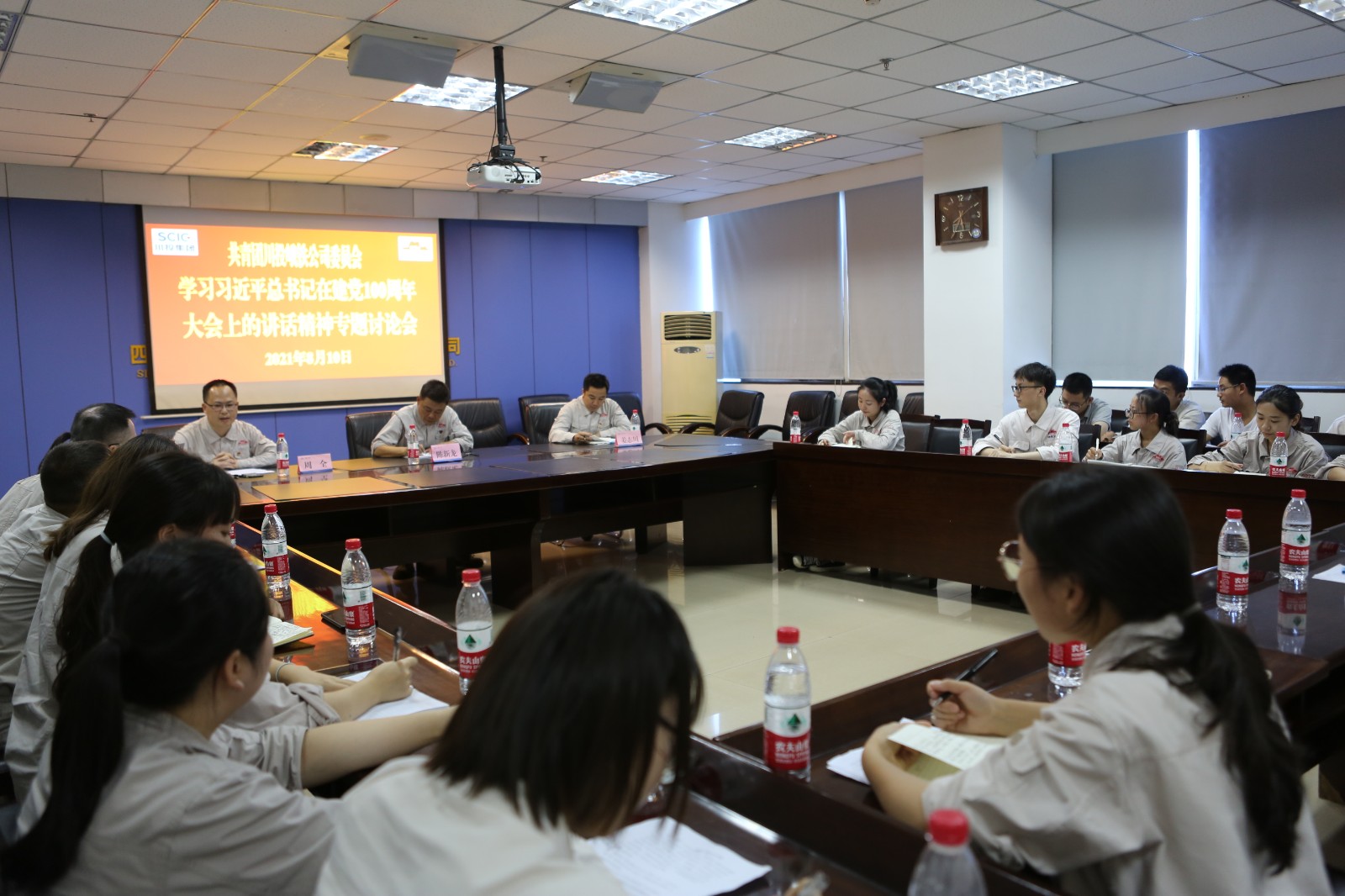 為深入學(xué)習(xí)貫徹習(xí)近平總書記在慶祝中國共產(chǎn)黨成立100周年大會(huì)上重要講話精神,進(jìn)一步筑牢信仰之基、補(bǔ)足精神之鈣、明確前進(jìn)方向,8月10日,川投峨鐵公司團(tuán)委在908會(huì)議室召開學(xué)習(xí)習(xí)近平總書記在建黨100周年大會(huì)上的講話精神專題討論會(huì),公司青年工作委員會(huì)成員、團(tuán)委班子成員、共青團(tuán)員以及新進(jìn)青年員工共25人參加。