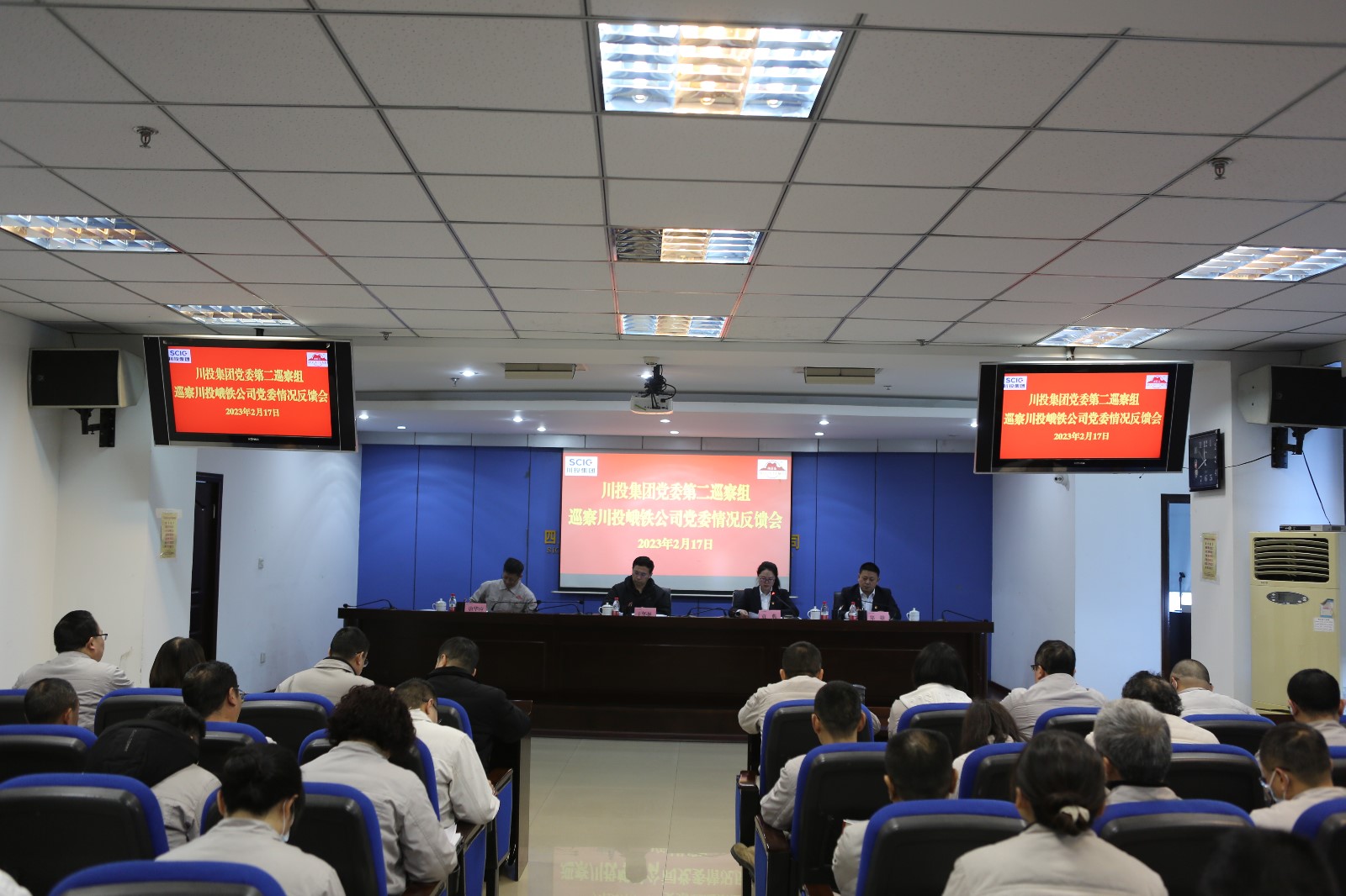 集團(tuán)黨委第二巡察組組長(zhǎng)、巡察辦副主任袁典,黨委組織部副部長(zhǎng)鄭雄及相關(guān)人員出席會(huì)議,公司領(lǐng)導(dǎo)班子成員、二級(jí)單位黨政主要負(fù)責(zé)人和黨員代表共34人參加會(huì)議。