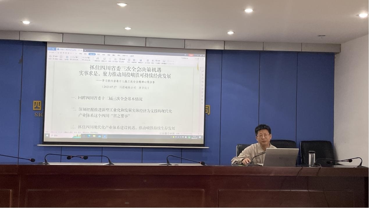 為深入學習宣傳貫徹省委十二屆三次全會精神,推進全會精神在川投峨鐵公司落地落實,7月27日,川投峨鐵公司黨委書記唐華應同志以《抓住四川省委三次全會決策機遇 實事求是,聚力推動川投峨鐵可持續(xù)經(jīng)營發(fā)展》為題,在1011會議室講專題黨課、分享對省委十二屆三次全會精神的學習心得。