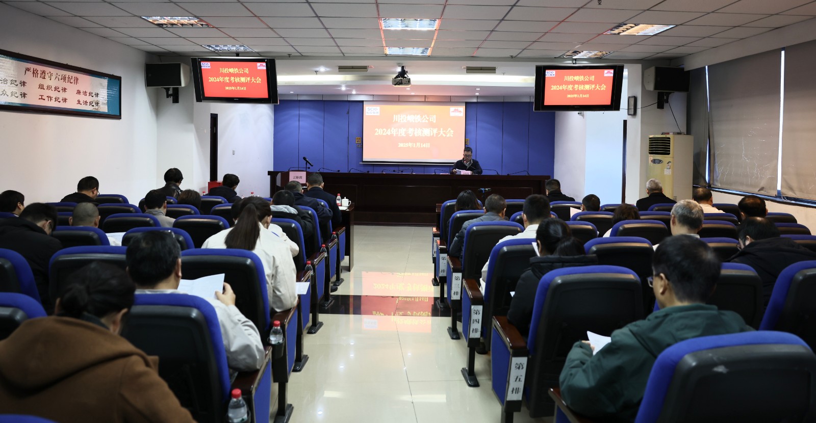 為扎實(shí)做好2024年度公司領(lǐng)導(dǎo)班子和班子成員的年度考核,落實(shí)公司干部選拔任用工作“一報(bào)告兩評議”的要求,1月14日,川投峨鐵公司召開了2024年度考核測評大會。公司黨委書記、董事長李勝章主持會議并講話。公司在家領(lǐng)導(dǎo)班子成員、外部董事、全體中層管理人員、部分職工代表共48人參加了會議。
